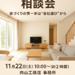 - 『住宅会社の選び方』相談会こんにちは😊 家づくりをお考えの皆さまへお知らせです。 🏠 『住宅会社の選び方』相談会 を開催いたします。 家… 続きを読む: 『住宅会社の選び方』相談会